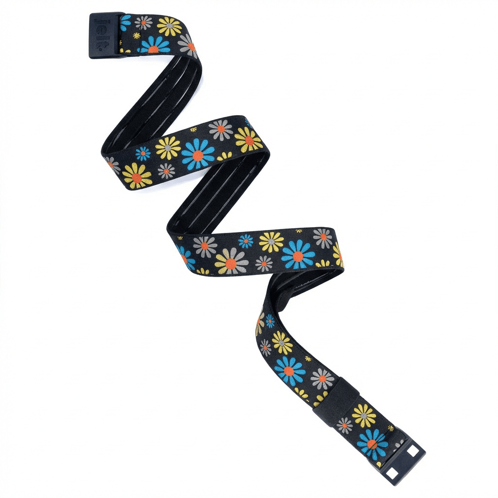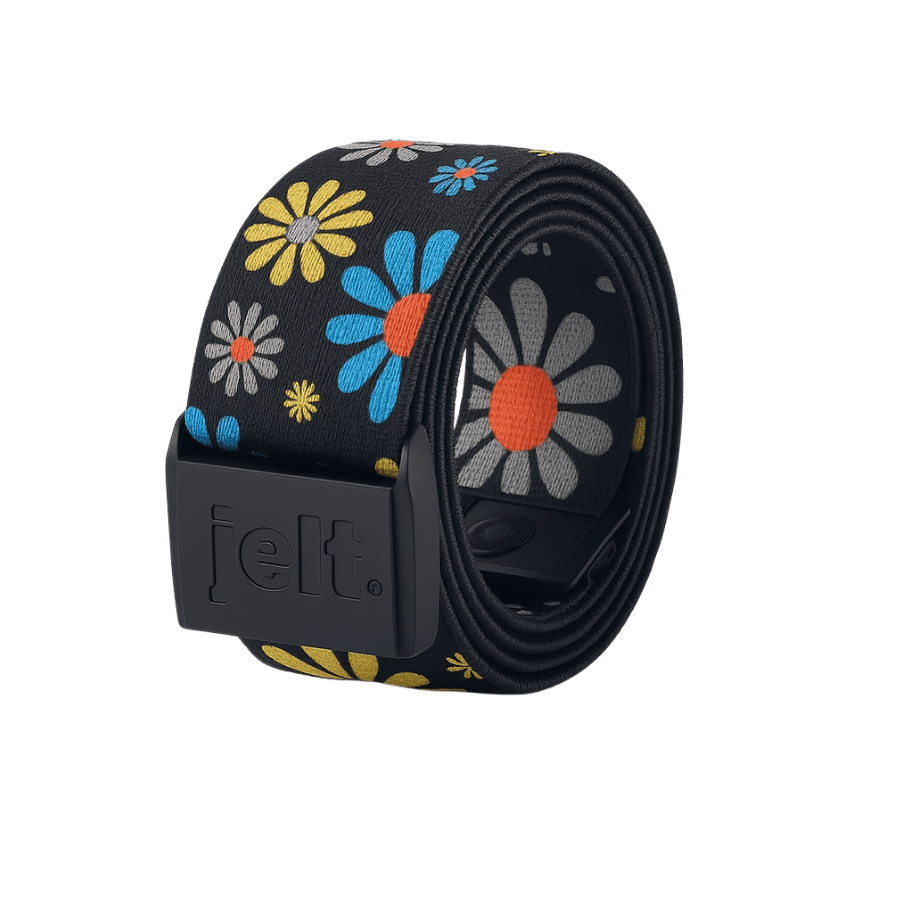 Our newest JeltX to the line up! The Daisy JeltX is adjustable for sizes XS-M+, stretching up to 38". With its adjustable design, this belt is easy to tighten or loosen to the perfect snug fit. It features a waterproof design and stretchy material that moves with you through any activity. Plus, the daisy pattern is a fun addition to any outfit.