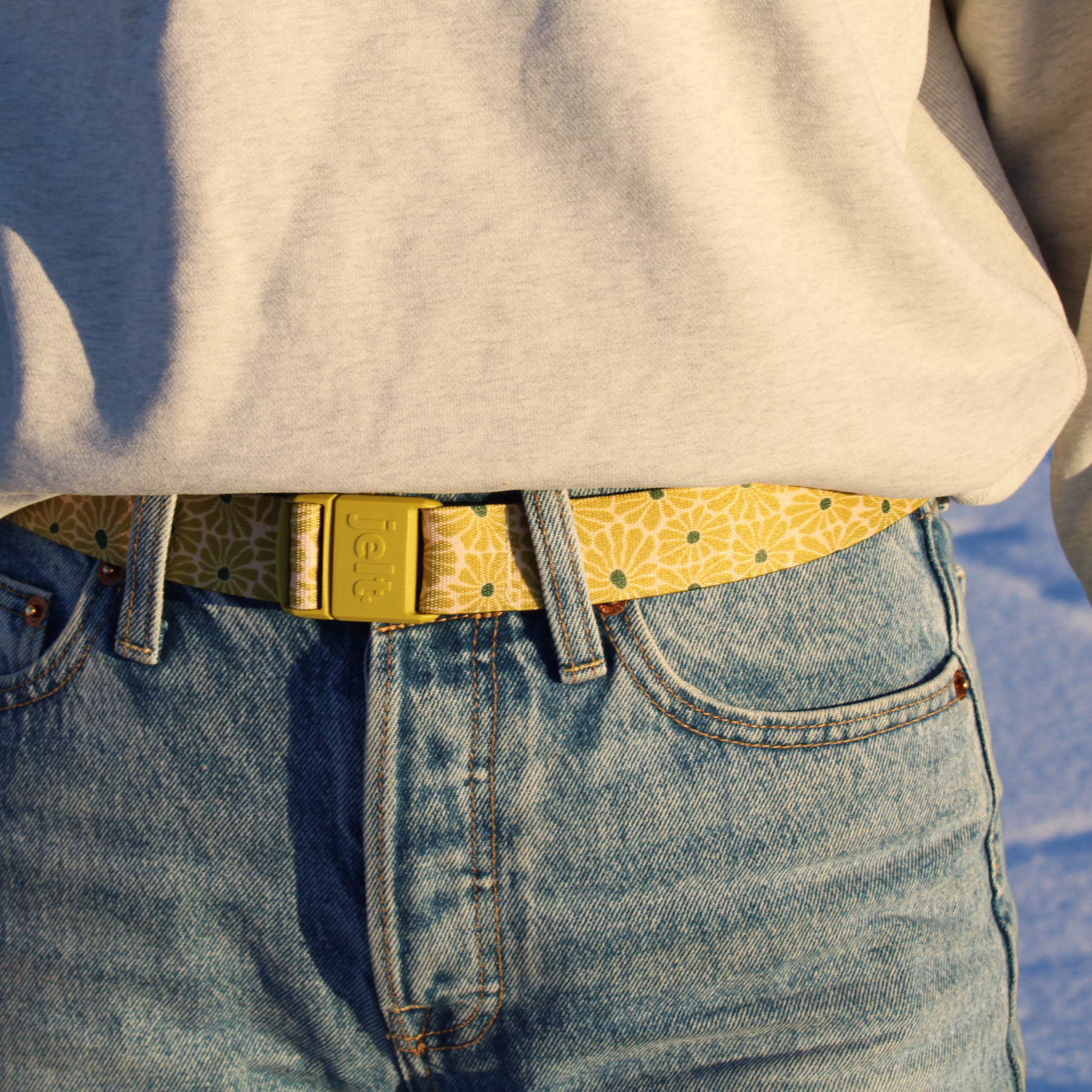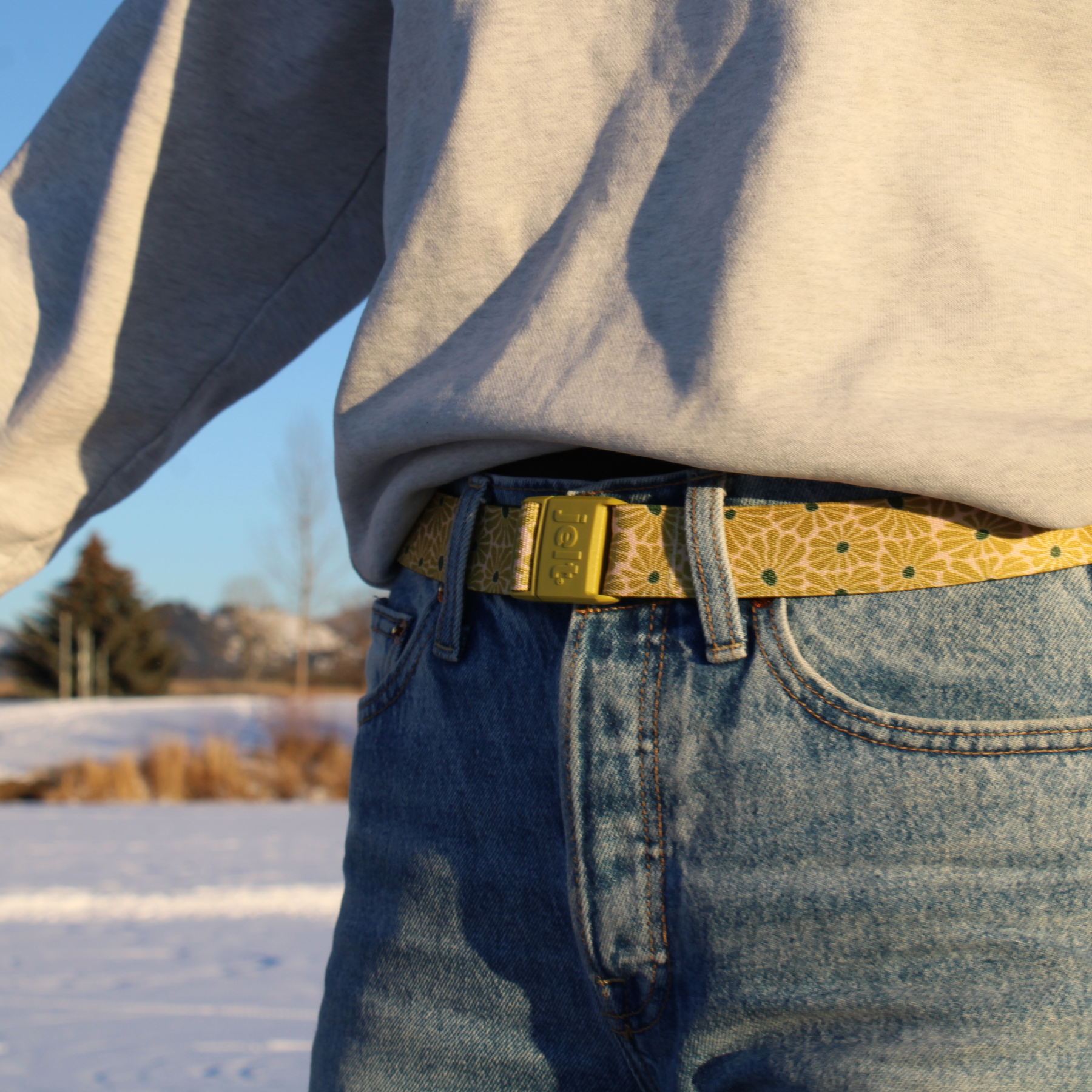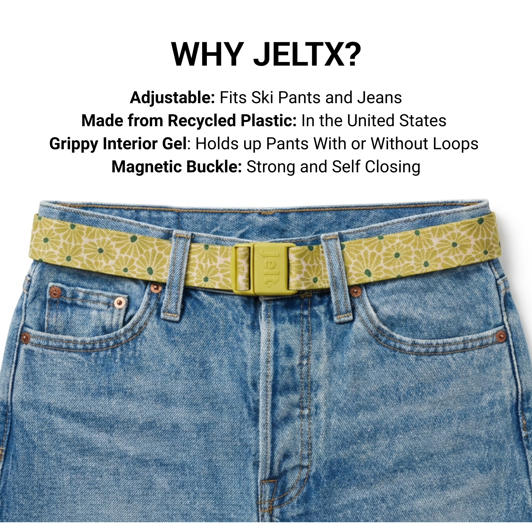Meet the newest JeltX in the lineup — and yes, it’s here to bring the color. This yellow and green floral design is all about a bright, playful personality (because there are never enough fun belt options). Low-profile and easy to wear, it stretches and moves with you while adding a cheerful pop to everything from jeans and joggers to ski pants and outdoor gear. The flat, no-show magnetic buckle stays comfortably out of the way, no matter where the day takes you.